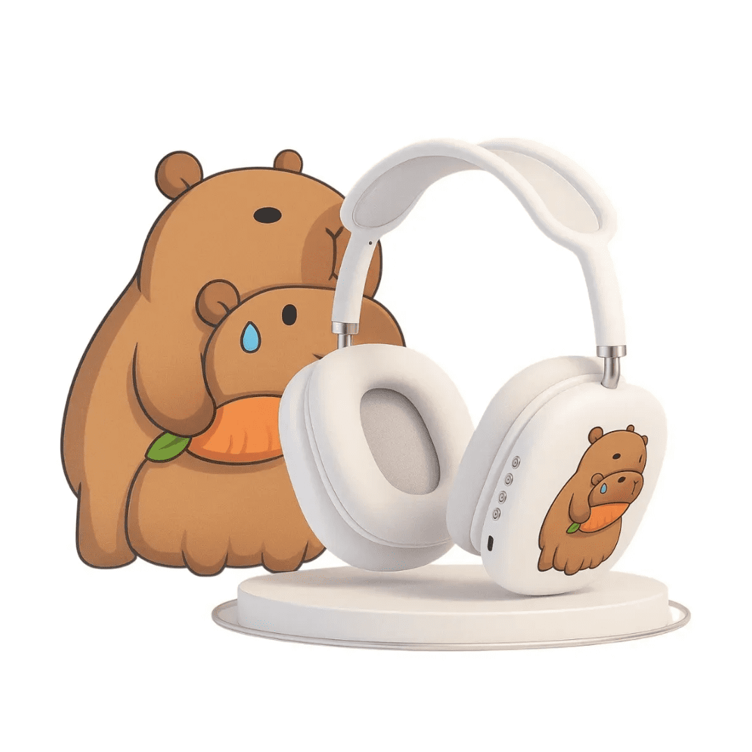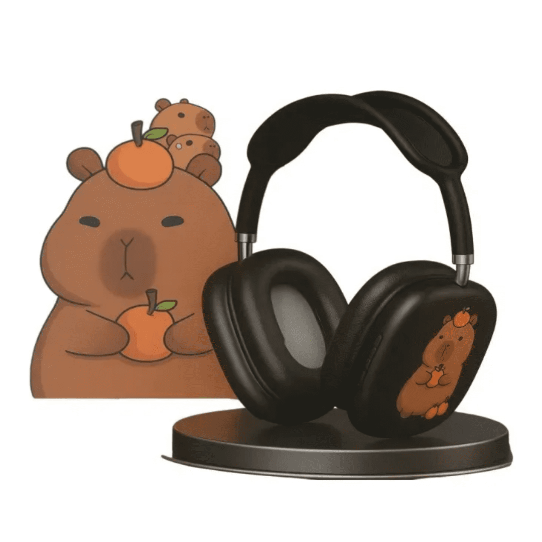 Disponibles en variedad de colores pastel y negro, estos auriculares con diseño de capibara son un producto de alta rotación en ventas mayoristas para locales de tecnología, jugueterías, bazares o regalarías.