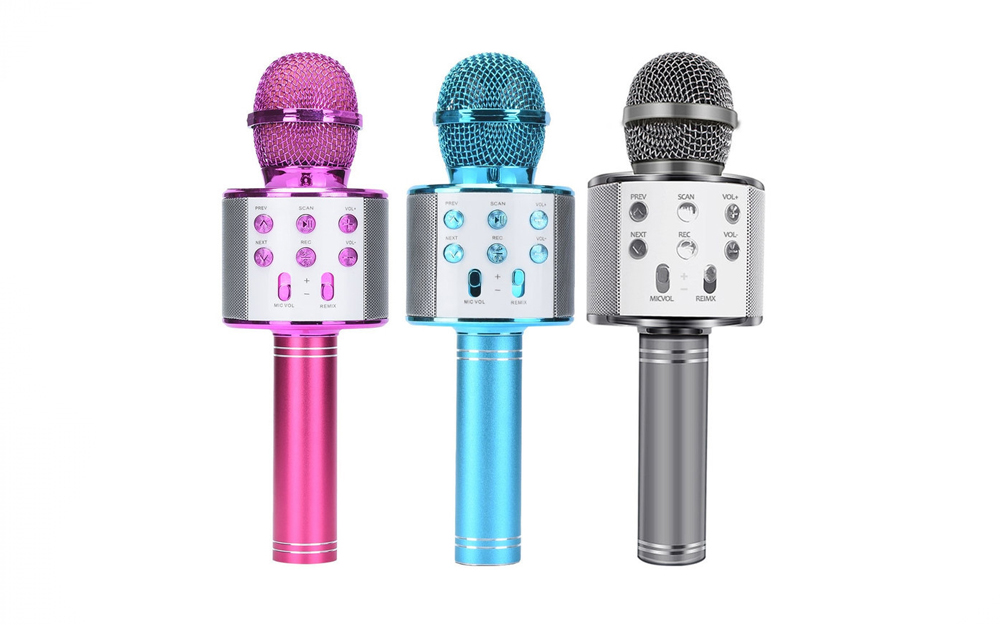 • MICRÓFONO MULTIFUNCIONAL: Con este micrófono elegante y funcional, puede cantar y grabar en cualquier momento y en cualquier lugar. Se puede utilizar como altavoz, reproductor, radio FM y grabadora, y es compatible con la tarjeta TF, tiene un puerto AUX y se conecta a su teléfono.